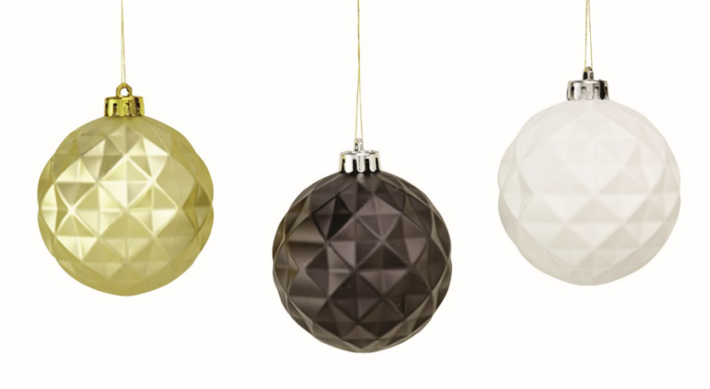 Conforama, boules Orna, 3,99 € les six.