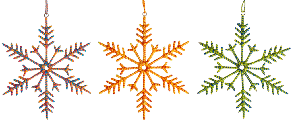 Emblème des fêtes de fin d’année, cette étoile tissée apporte un petit je-ne-sais-quoi ethnique au sapin. The Conran Shop, 9,50 €