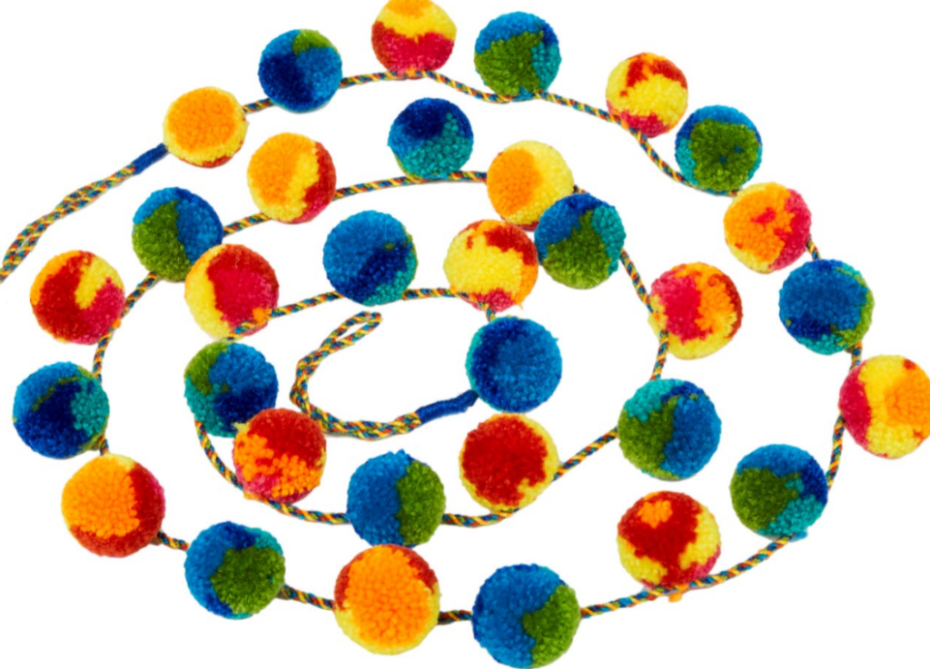 Confectionnée avec 42 pompons en laine, cette guirlande s’accroche partout, très facilement. The Conran Shop, PomPom Galore, 22 €
