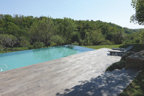 Adaptables à l’extérieur comme à l’intérieur, ces produits présentent des atouts propres. étanches et non poreux, ils trouvent parfaitement leur place à côté d’une piscine, comme on peut le voir dans la collection Pietra Serena, de Land Porcelánico. Grâce aux récents procédés de fabrication, comme la compression à haute pression (400 bars) et à température très élevée (1 200 °C), ou encore l’application de couches ultra-protectrices, les marques présentent désormais des matériaux plus légers et résistants aux UV, à la glisse, aux taches, aux champignons, aux rayures, à l’abrasion, au dégel, à la glace ou au feu. L’entretien, la coupe et l’installation se trouvent alors simplifiés. Plus d’écharde dans le doigt, plus de pierre qui se fissure à la pose… L’installation se fait facilement et rapidement sur des plots réglables dans la plus grande majorité des cas et sans besoin de pré-perçage pour le bois. Le nettoyage au savon et à l’eau suffit désormais pour l’entretien. Il n’est plus nécessaire d’utiliser des solvants, des produits chimiques, des nettoyants abrasifs, de la cire ou de l’huile et encore moins de laver à haute pression.