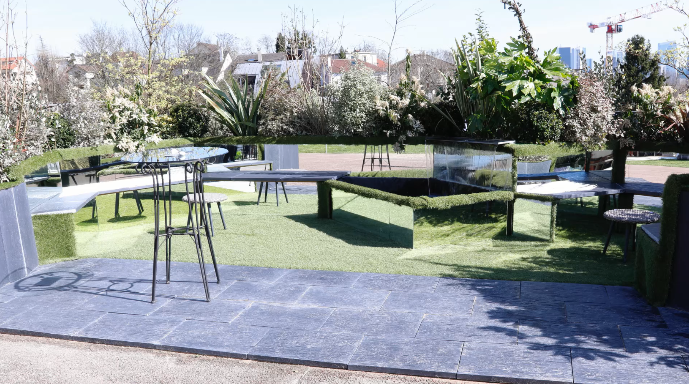 Comment créer de la perspective et des effets de volume avec des miroirs ? Les paysagistes de Nadea apportaient une proposition originale début avril, à l’occasion de Jardins en Seine, à Suresnes.