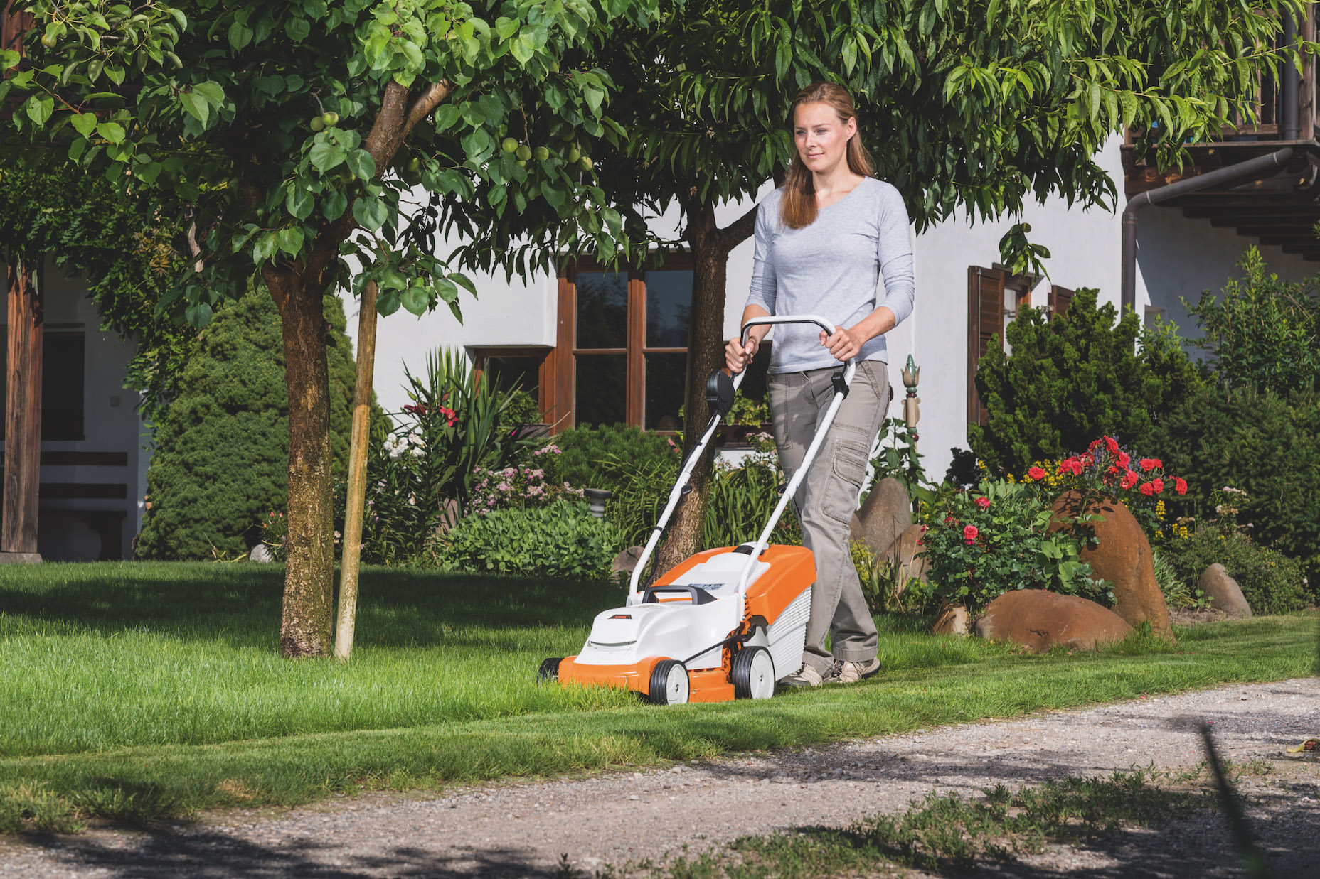 Stihl, tondeuse RMA235, 299 € sans batterie ni chargeur, 399 € avec batterie AK20 et chargeur.