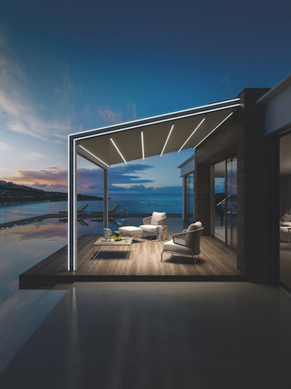 La pergola s’affirme comme une pièce en plus de l’habitation, comme son prolongement. « Elle est, aujourd’hui, une pièce à part entière, le système utilisé doit donc répondre aux mêmes demandes que celles de l’habitation », nous  précise Fabien Chatagnon, directeur technique et industrie de Vie & Véranda (1). À tel point qu’elle est soumise à un permis de construire ou, a minima, à une déclaration de travaux si sa surface ne dépasse pas les 40 mètres carrés. Cette pièce semi-extérieur, transition entre la maison et le jardin, doit être particulièrement lumineuse mais à l’abri des intempéries. Le confort souhaité est le même que celui d’un intérieur, à l’instar des tendances pour les salons outdoor. Sa construction est pensée de plus en plus en amont, parfois même dès la construction de la maison, comme la pergola Aero Skype, de Renson, qui est directement encastrée dans la toiture.