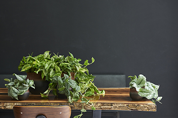 Le jeune scindapsus possède de petites feuilles ovales de 15 cm de longueur qui, au fil du temps, acquièrent une forme de cœur et vont mesurer jusqu’à 25 cm. Il se décline en différentes variétés aux feuilles de différentes couleurs et nuances : l’Argyraeus (petites tâches grises) le Trebie (striées de gris), le Golden Queen (entièrement jaunes) ou encore le Marble White ( avec des « veines » blanches). Plante qui s’adapte très bien aux intérieurs ( elle y atteint 2 mètres de longueur), le scindapsus demande relativement peu de soins et pousse rapidement. Pas beaucoup d’arrosage donc mais un environnement qui doit être tout de même assez lumineux (sans être en plein soleil), au risque sinon de voir ses feuilles s’éclaircir et perdre ses couleurs. Un autre de ses bienfaits en appartement est sa qualité dépolluante. En effet, d’après l’étude Clean Air de la NASA, le scindapsus est une plante qui aide à améliorer la qualité de l’air que nous respirons. Un seul bémol : sa sève est toxique, ce qui demande tout de même de faire attention si on a des enfants en bas âge et des animaux domestiques.