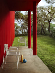 Localisé dans la région portugaise d’Alentejo, la Casa 3000, réalisé par l’agence Rebelo de Andrade, s’étend sur 500 hectares, comme une touche de couleur qui se détache dans le vert environnant. C’est ici que Pedrali a choisi de mettre en scène ses derniers produits :  Cet exercice de style,  est ainisi l’occasion de revenir sur les différentes collaborations de l ‘éditeur italien avec les designers : la collection Tribeca avec CMP Design, les sofas Reva de Patrick Jouin , les collections Soul et Remind d’Eugeni Quitllet,  , les lampes Giravolta dans différentes déclinaisons…   Une occasion aussi d’imaginer une mise en situation originale des produits,  par la puissance du décor contrasté entre une maison rouge et un cadre végétal fort, et une valorisation des lignes élégantes des assises.