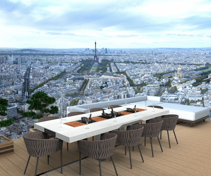 – Entièrement modulable et sur-mesure, Agathe réunit au centre de la table des plaques à induction, planchas teppanyaki, pierre à griller, seau à glaçon, au tout autre accessoire similaire. Les finitions sont en Dekton. Des versions en table haute sont possibles.