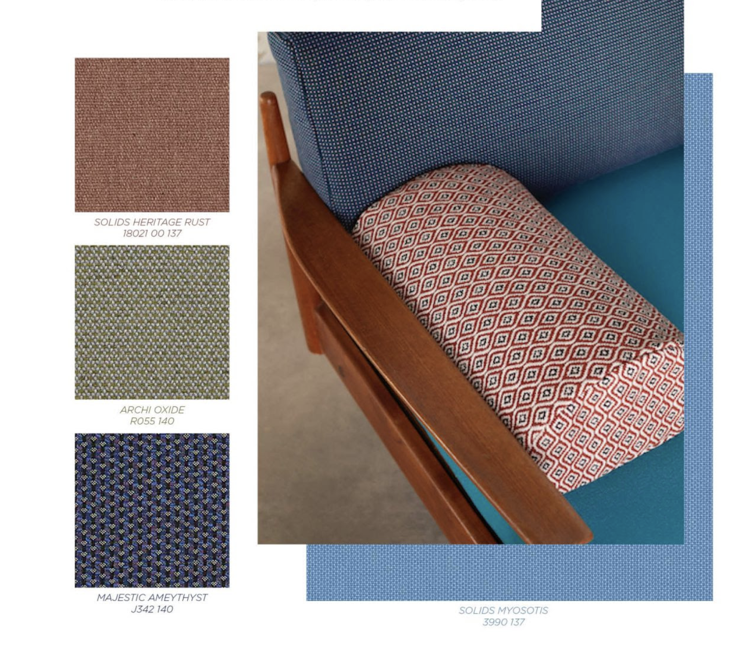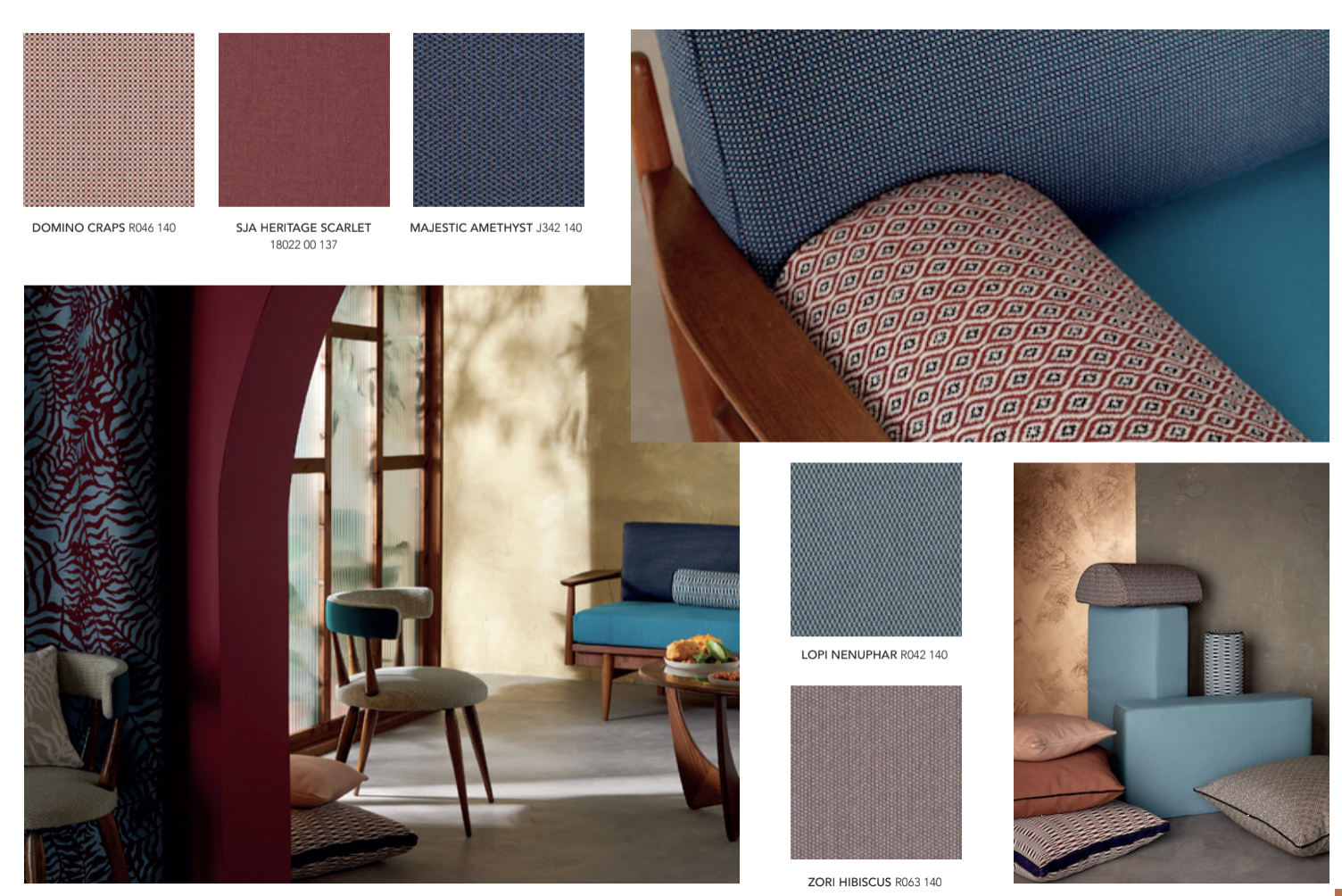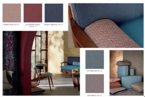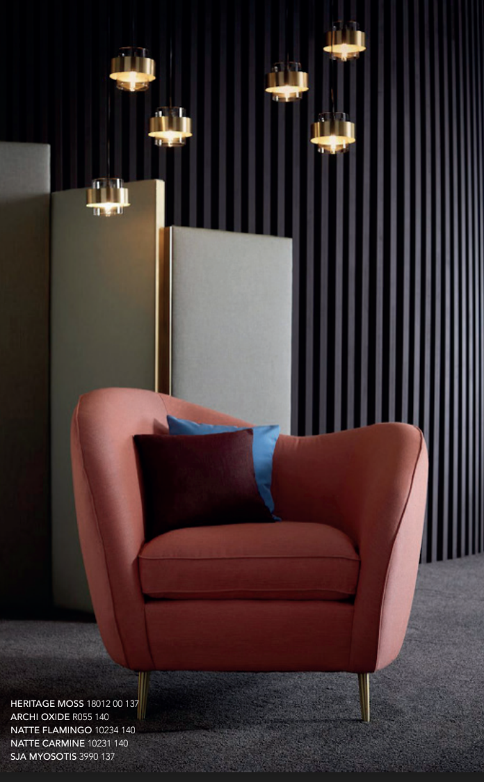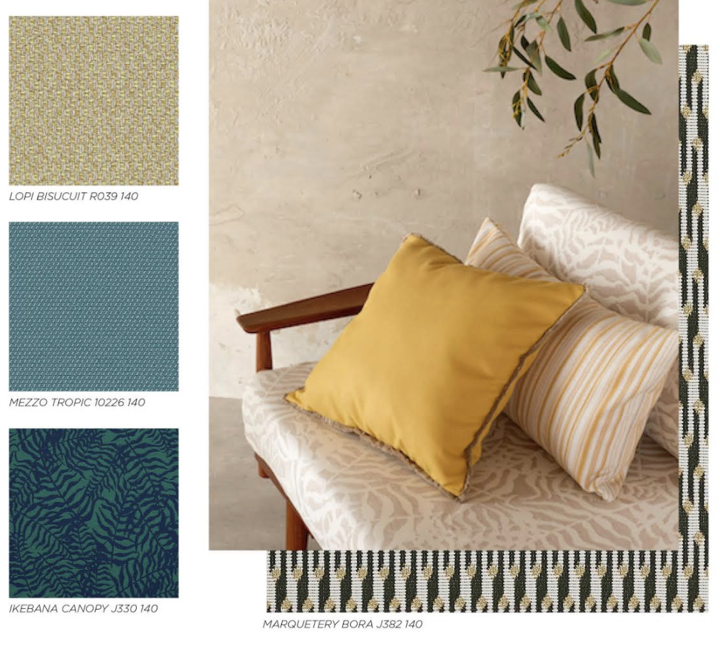 Dans cette nouvelle lecture de l’offre de Sunbrella, cette collection se targue de proposer 148 références dont 53 nouveautés.On y retrouve la toile Solids de la marque,– très résistante comme son nom l’indique – qui propose un spectre de 50 couleurs, aux effets ottomans, piqués, chinés. Parmi les nouveautés, Archi est idéale pour une utilisation siège et est composée de 6 teintes minérales et naturelle. On trouve aussi le jacquard de Komo, inspiré du tressage du raphia, les faux unis et les teintes givrées de la gamme Relax, et la déclinaison de Majestic, à la texture travaillée, mise en valeur par la lumière, qui conviendra aussi bien en rideaux qu’en revêtement d’assise et de coussin. De son côté Sling, tissé en PVC et acrylique, s’adaptera particulièrement aux mobilier d’extérieur. Enfin Héritage complète habilement la gamme par son effet vintage, qui vient de sa composition particulière entre fibres vierges et recyclées.